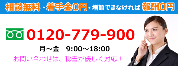 と心配される方も多いですが、依頼する段階でお金は1円たりともかかりませんし、増額できなかったら料金はかからないため、相談者の方にとっては全くリスクがありません。